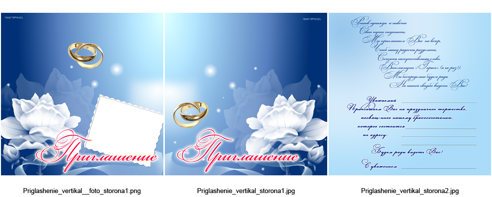 2 PSD файла - содержат титульную сторону и заднюю сторону (с текстом самого приглашения) 2 PSD | 2480x2475 | 300 dpi | Слои включены |+ Превью